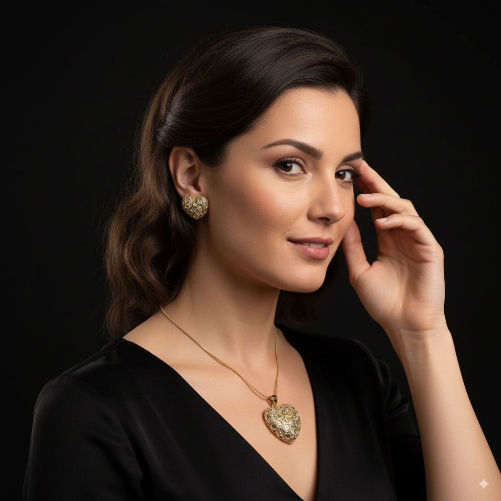 Crafted with 18K gold plated copper, the Heart Snake Chain set features a sparkling zircon inlay on a snake chain with a heart pendant and matching earrings. Delicate and elegant, this set is perfect for adding a touch of glamour to any outfit.