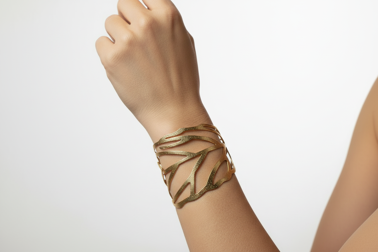 Delicate hollow leaf charms cascade gracefully along this refined bracelet, crafted from premium stainless steel with luxurious gold plating. The intricate cutout design creates an ethereal, botanical aesthetic that catches light beautifully. Durable and hypoallergenic, this piece transitions effortlessly from day to evening wear, offering