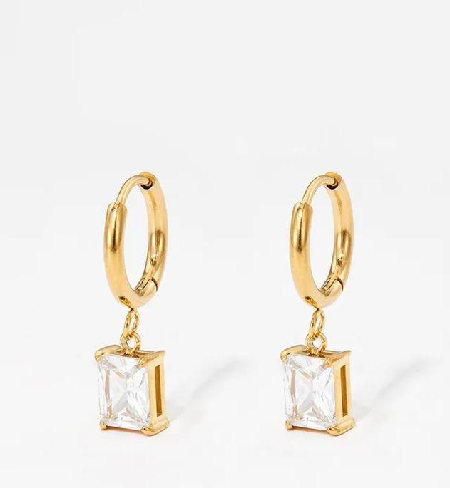 Elevate your style with these Square Gem Earrings, expertly crafted from durable stainless steel and finished with a premium gold plating for long-lasting shine. Featuring a modern geometric design, these fashion earrings for women add a touch of sophistication to both professional attire and casual outfits.